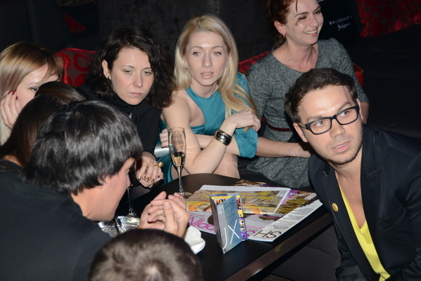 Ольга Бубликова, арт-директор Академии стиля и дизайна поведала о секретах новогоднего макияжа в золотых тонах, который любую девушку превратит в королеву вечеринки. Не обошлось и без Жертвы моды, которую нашли прямо на вечеринке. Здесь же прошел кастинг. И девушка с длиной ног в 94 см отправилась перевоплощаться в … Шакиру (как Вы догадались, 94 см — длина ножек Шакиры). Через 10 минут на сцене появилась богиня в золотом платье из коллекции Андре Тана и с золотым макияжем. Оказалось, что девушка очень любит творчество певицы и, вдохновленная своим новым образом, гостья станцевала танец с фирменными движениями Шакиры.