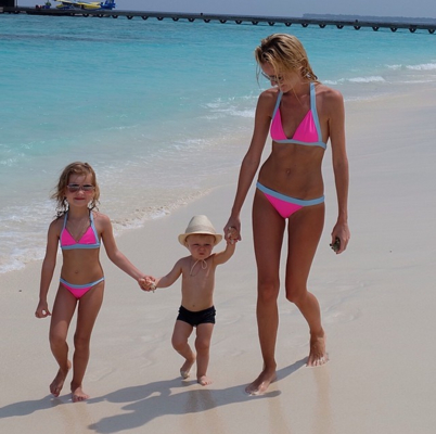 Прямо оттуда Яна публикует фото в социальную сеть. Милые снимки с детьми и супругом на пляже, а также Рудковская продемонстрировала, что находится в отличной спортивной форме, выложив фото на тренажере.