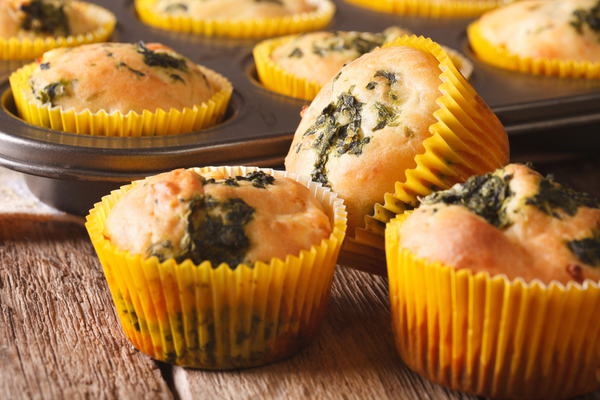 Маффины бывают не только сладкими. Предлагаем тебе испечь вкусные кексы с рассольным сыром и шпинатом.