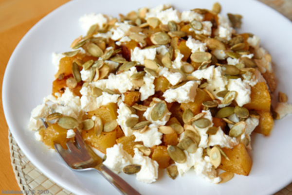 Тыквенный салат с фетой, тыквенными семечками и мускатным орехом
