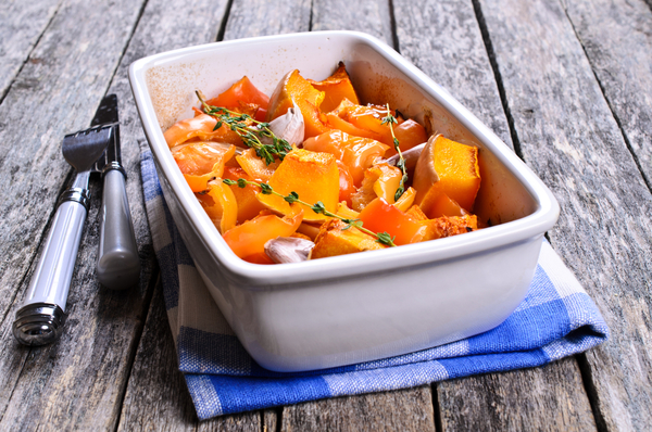 Запеченная тыква с луком станет прекрасным гарниром к мясу или самостоятельным вегетарианским блюдом