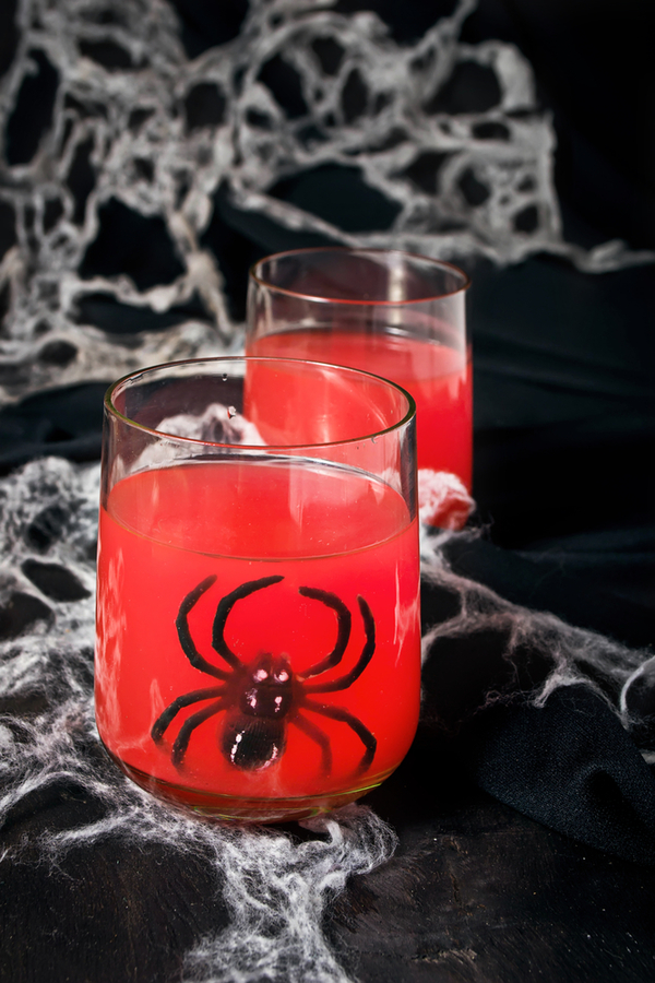 Идеальный напиток для Хэллоуина! Чтобы сделать его по-настоящему страшным, добавь в бокалы пластмассовых пауков или желейные конфеты в виде червей