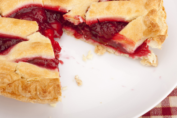 1. Приготовить начинку. В большой миске смешать сахар, кукурузный крахмал, мускатный орех и гвоздику. Добавить вишню и клюкву, аккуратно перемешать.