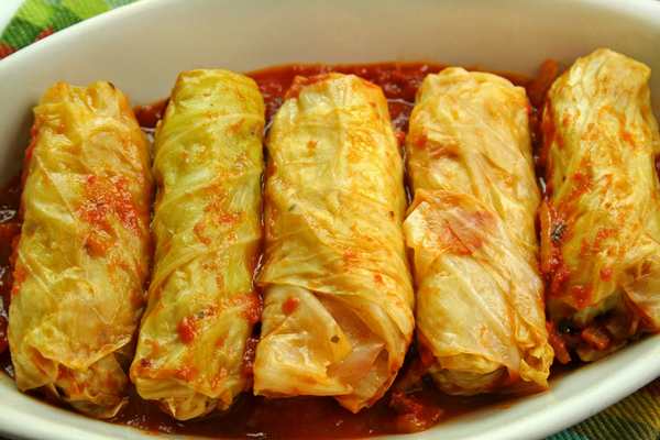 7. Залить голубцы соусом и тушить 30 минут под крышкой на слабом огне.