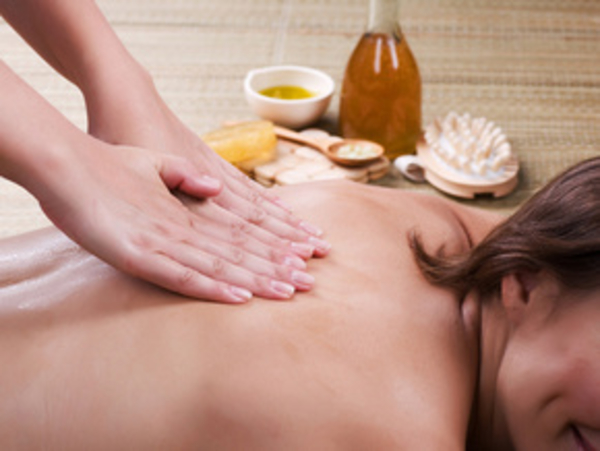 В начале процедуры клиент ложится на кушетку, и мастер медленно льет ему на тело масло.