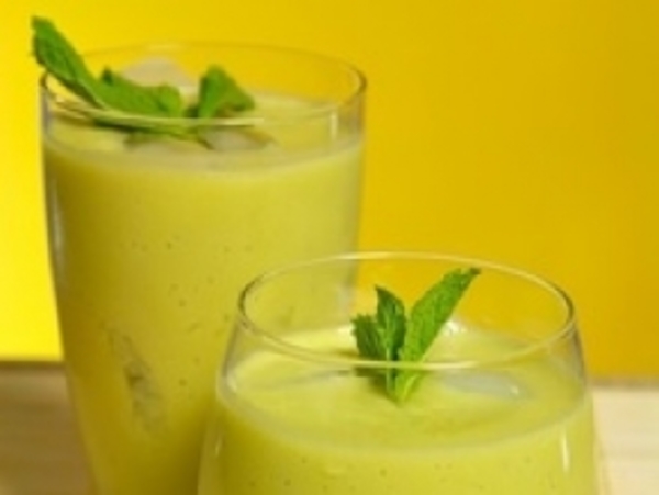 2. Положи ее в блендер вместе с порезанной луковицей, чесноком, мятой и кинзой.