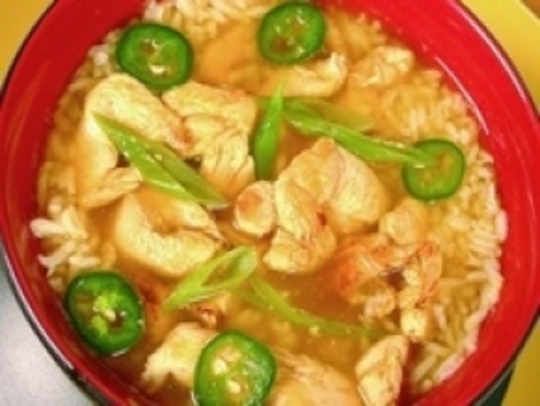 5. Тем временем порежь перец кружочками, а сельдерей — кусочками. Положи в суп. Добавь специи, мелко посеченную луковицу. Провари еще 5-7 минут.