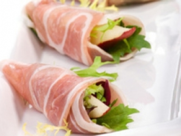 1. Бекон или парму нарезаем тонкими ломтиками.