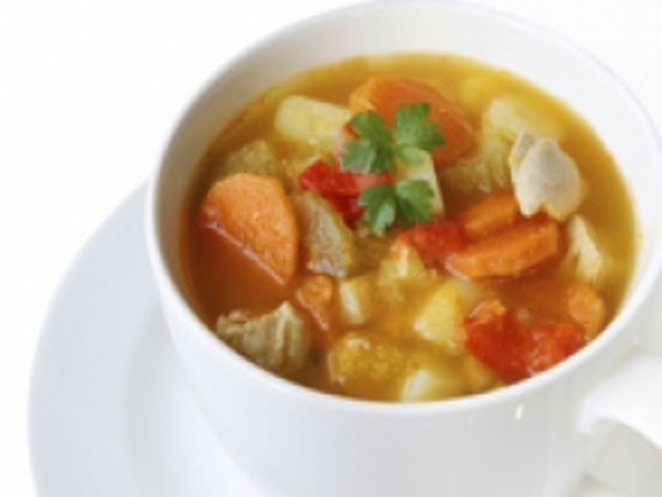 2. Чищу и промываю картофель. Нарезаю кубиками вместе с болгарским перцем. Морковь нарезаю кружочками. Все вместе добавляю к филе. Продолжаю варить еще 10-15 минут, добавив масло.