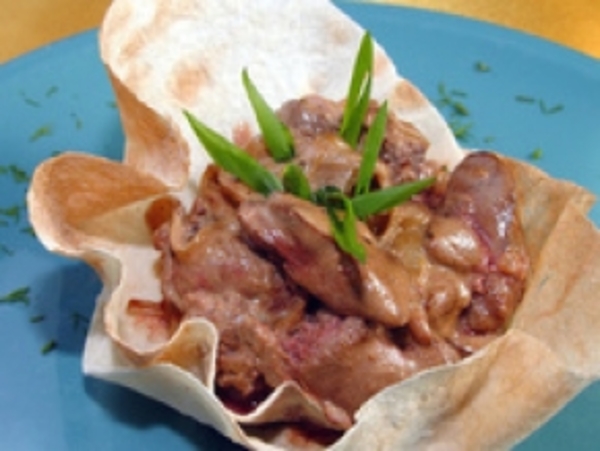 8. Вынимаю из духовки и охлаждаю. Внутрь формочки выкладываю печенку и украшаю перышком зеленого лука.