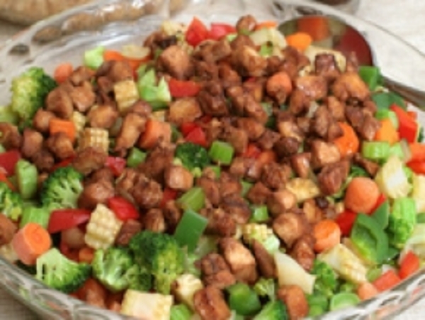 6. Снимаем с плиты, перемешиваем и сразу перекладываем в салатницу. Подаем к столу закуску горячей.