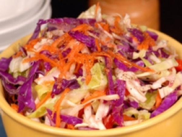 4. Все ингредиенты смешиваю. Прибавляю сахар по вкусу, заправляю оливковым маслом и виноградным уксусом, придающим салату пикантную кислинку..