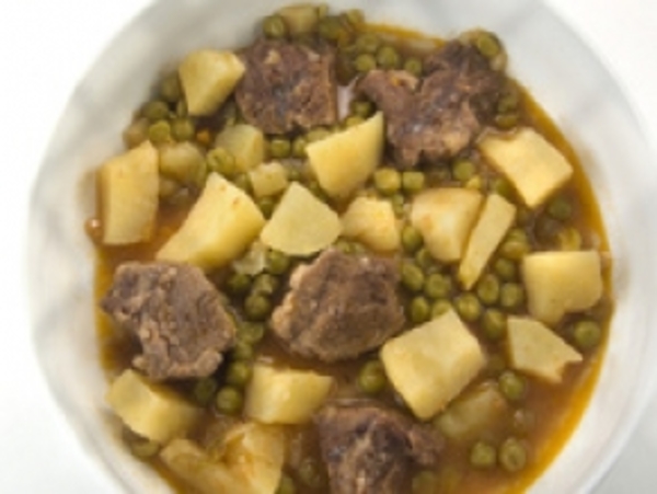 2. Очищаем картофель и нарезаем кусочками. Через 10 минут добавляем к мясу.