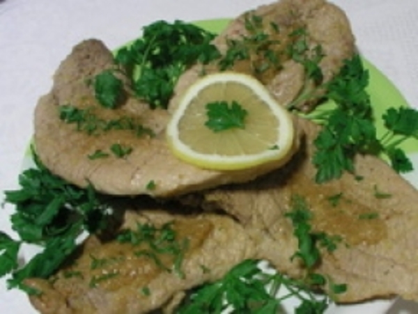 2.Кладу отбитые куски в маринад и оставляю на 10-15 минут. Когда мясо замаринуется, панирую его в сухарях или хлебных крошках. Делать это следует непосредственно перед жаркой, чтоб панировка не отсырела и не отстала.