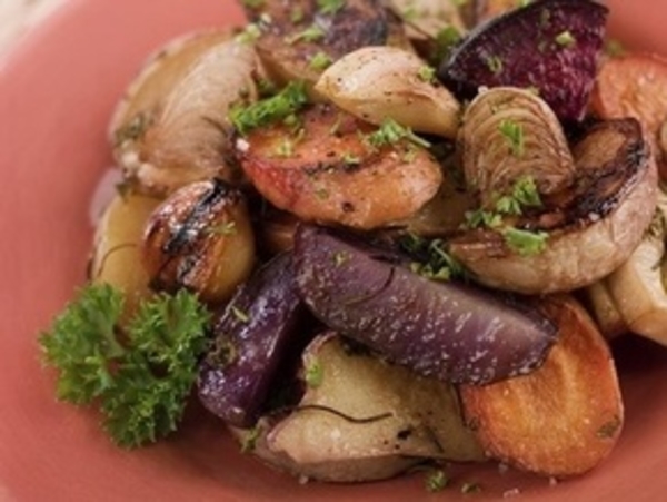 3. Выложить овощи на смазанный маслом противень, полить маслом и смесью черного перца чили.