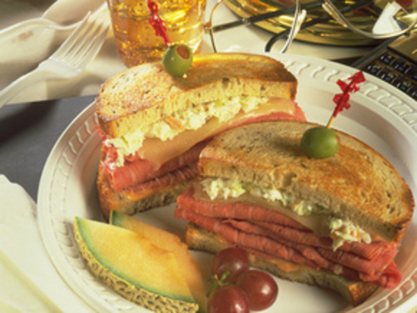 4. Накрываем вторым кусочком хлеба и сразу же подаем.