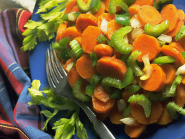 1. Овощи моем, даем стечь. Сельдерей нарезаем некрупніми кусочками. Морковь чистим и режем кружочками.