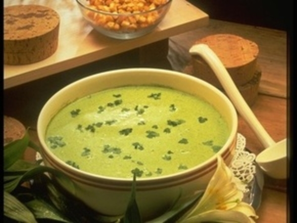 Совет: на основе сметаны можно приготовить крем-фреш. Бульон, вино и сливки налей на приправленный сахаром, солью и перцем горошек. Четыре листа мяты очень мелко поруби и перемешай со сметаной. Горошек хорошо пюрируй миксером вместе с бульоном.