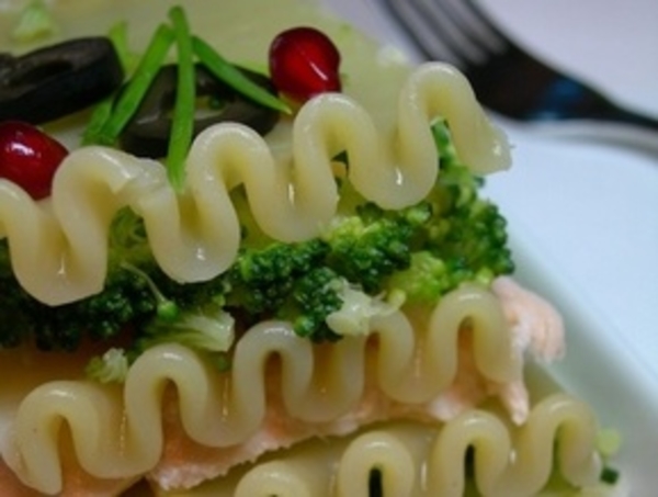 Очень изысканная версия лазаньи. Лосось и брокколи - практически идеальное сочетание. Сливочный соус придает нежность.
