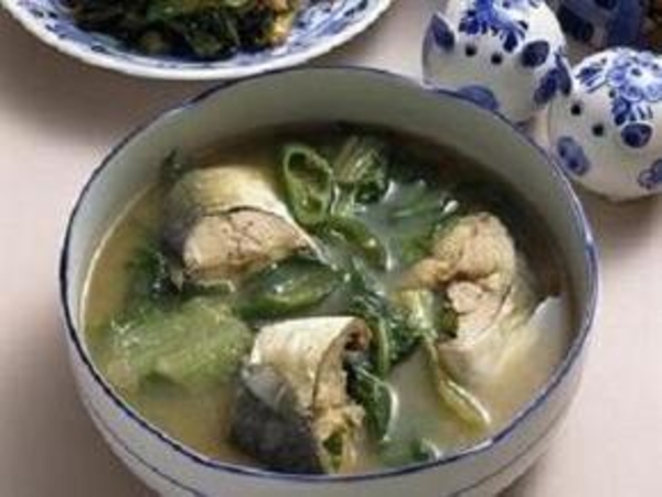 Зеленый борщ с рыбой