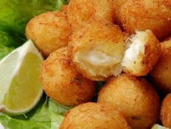 4. Пончики панируем в сухарях (если пристают плохо, обмакивай вначале во взбитое яйцо) и порциями кладем в кипящий фритюр. Когда всплывут и подрумянятся - вынимаем и выкладываем на бумажную салфетку, чтобы убрать лишний жир.