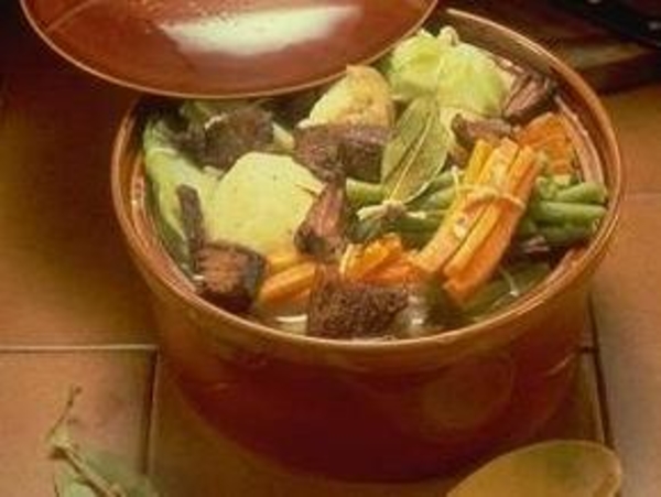 5. Через 10 минут температуру убавляем до 160°С и тушим рагу до готовности мяса (еще около 40-50 минут).