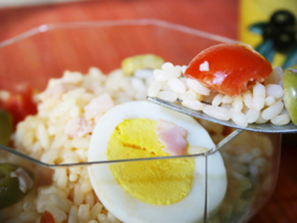 Рисовый салат с овощами и яйцом