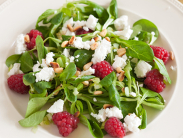 1. Малину и салаты моем и обсушиваем на салфетке.