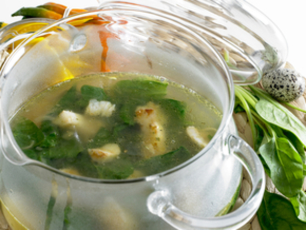 Суп со шпинатом и белой рыбой