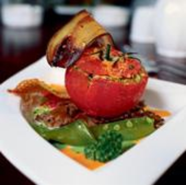 Вешенки обжарить, часть отложить, а часть нарезать тонкими полосками и смешать с анчоусами, грецкими и кедровыми орехами, рубленым базиликом и петрушкой. Начинить фаршем помидоры, накрыть крышечками, сбрызнуть маслом и посыпать пармезаном. Запекать в духовке 10–12 минут при температуре 180˚С.