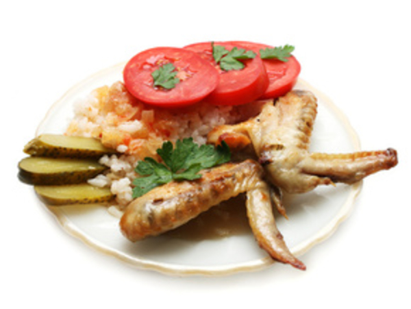 2. Растереть в ступке чеснок, соль, перец и чабрец. Натереть этой смесью куриные крылышки, положить их в пакет и затем на один час в холодильник.