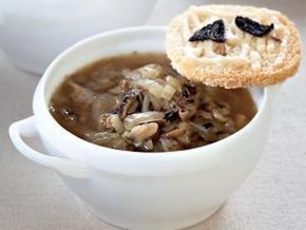 Влить херес и готовить, пока не исчезнет запах алкоголя. Добавить куриный бульон, довести до кипения, варить под крышкой на минимальном огне 30 мин.