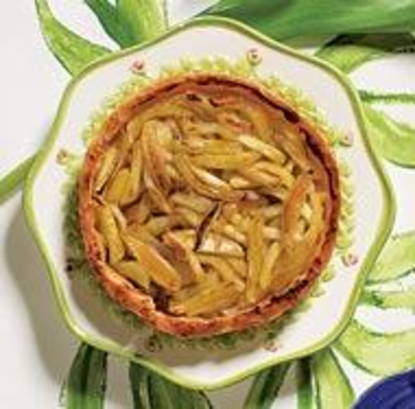 Яблоки выложить в миску, смешать с медом. Тесто тонко раскатать. Форму для запекания смазать маслом и выстелить тонким слоем теста.