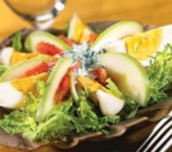 3. Орегано вымыть, измельчить, смешать с оставшимся лимонным соком и майонезом. Посолить, поперчить по вкусу. В салатницу уложить листья салата, сверху положить крабы, яйца и яблоко. Полить заправкой.