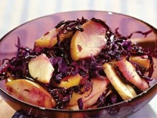 Разогреть в сковороде сливочное масло, положить капусту, посолить, поперчить, влить уксус. Готовить на небольшом огне под крышкой, время от времени помешивая, 1 ч 20 мин.