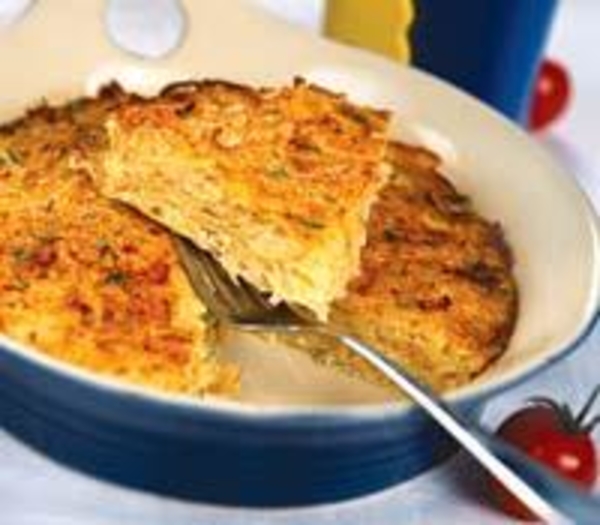 3. Разогреть духовку до 180 С. Выложить получившуюся массу в форму для запекания, разровнять поверхность и присыпать молотой паприкой. Выпекать 15 мин.