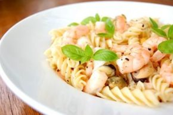 Фузилли с креветками и мидиями в лимонном соусе