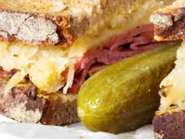 Намазываем ломтики хлеба сырной пастой, выкладываем нарезанную ветчину, огурцы.