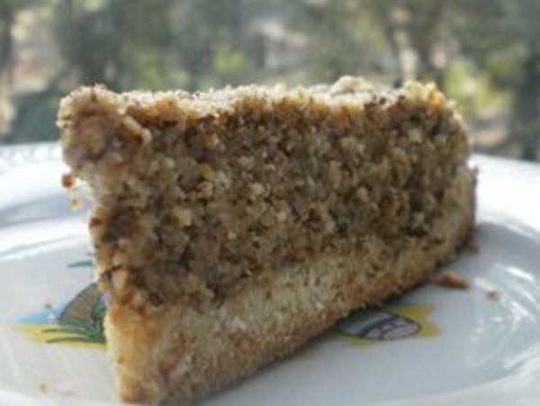 Нужно будет стакан чищеных грецких орехов. Они тоже идут в тесто, начинки в этом пироге нет.