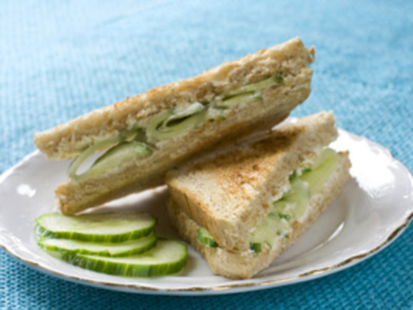 Положить огурец на один кусок хлеба, сверху накрыть другим.