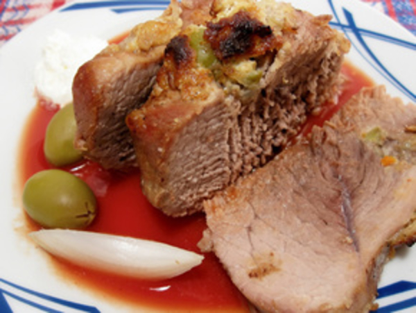 Итак, мясо промариновалось. Перед запеканием обжариваем его на раскаленной сковороде без масла, до подрумянивания. Кладем в емкость для запекания и ставим в духовку, нагретую до 250 градусов. Периодически поливаем выделяющимся соком. Если поверхность слишком зажарилась, накрываем свинину фольгой. Проверка на готовность – протыкаем ножом. Если идет прозрачный сок, то мясо готово.