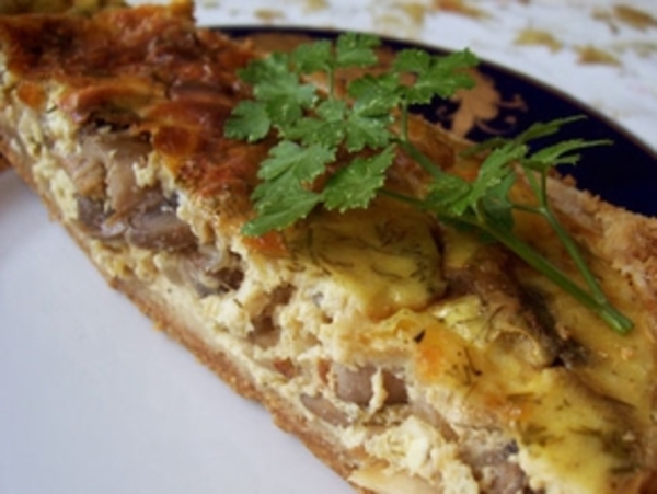 Грибы отварить в подсоленной воде до полуготовности, откинуть на дуршлаг, дать стечь воде, нарезать грибы соломкой и обжарить в растительном масле. Посолить и поперчить по вкусу. Куриное филе также нарезать соломкой, посолить, поперчить и обжарить на растительном масле. Лук мелко нарезать и обжарить до золотистого цвета. Все смешать и выложить на противень с высокими краями, полить майонезом, посыпать тертым сыром и поставить в разогретую духовку на 10-15 минут.