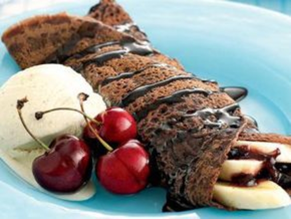 Если подавать эти блины с шариком мороженого, получится не только завтрак, но и очень праздничный десерт.