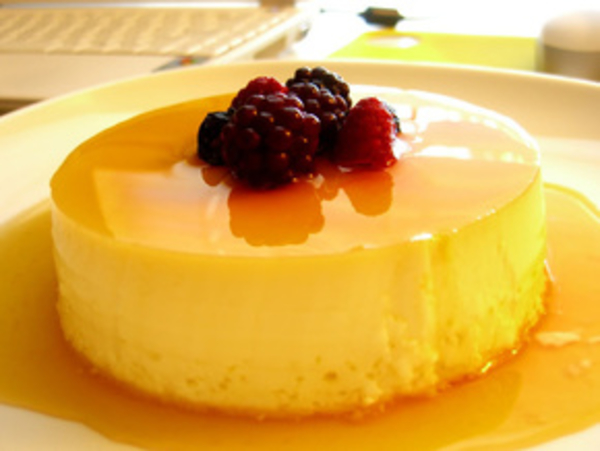 В глубокий противень разложить наполненные формочки и залить водой так, чтобы формочки были наполовину в воде. Выпекать крем при температуре 150-160 градусов. Крем готов, когда подрумянится.