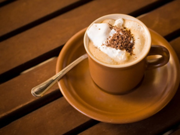 Кофе сварить и разлить по чашкам. В каждую чашку с кофе осторожно положить ложку взбитых сливок (сливки взбить с сахарной пудрой и ванилью).
