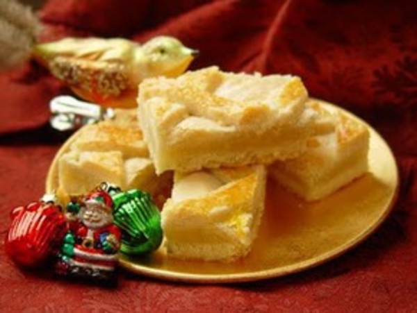 Раскатать оставшееся тесто до толщины 3 мм. Вырезать 12 полосок шириной 12 мм. Положить полоски крест накрест поверх начинки. Положить одну полоску по краю пирога.