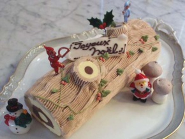 Обрежьте рулет с двух концов наискосок; обрезанные куски, не дав им развернуться, положите сверху в двух местах: они будут выполнять роль сучков.