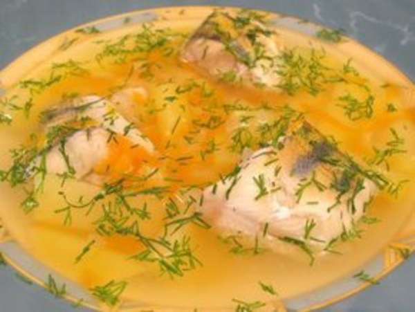 Рыбу почистить. Рыбьи головы и хвосты залить водой, варить 25-30 минут. Затем их вынуть (они нам больше не понадобятся), бульон при желании процедить. Рыбу нарезать небольшими кусочками. Лук мелко покрошить.