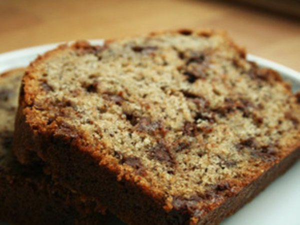 Осторожно добавьте финики и орехи пекан. Ложкой переложите тесто в подготовленную форму. Сверху выложите ломтики сушеного банана. Выпекайте 1 час. Готовность проверьте деревянной палочкой. После того, как Вы вынете хлеб из духовки, оставьте его в форме на 5 минут, а затем переложите на решетку и остудите.
