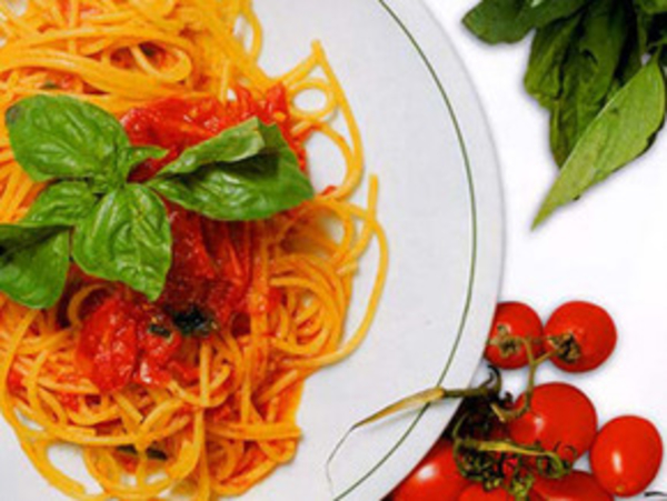 Пассеруют на сливочном масле мелко нарезанный лук и чеснок, добавляют мелко нарезанные помидоры, подрумянивают их вместе с луком и вводят спагетти, осторожно перемешивая их.